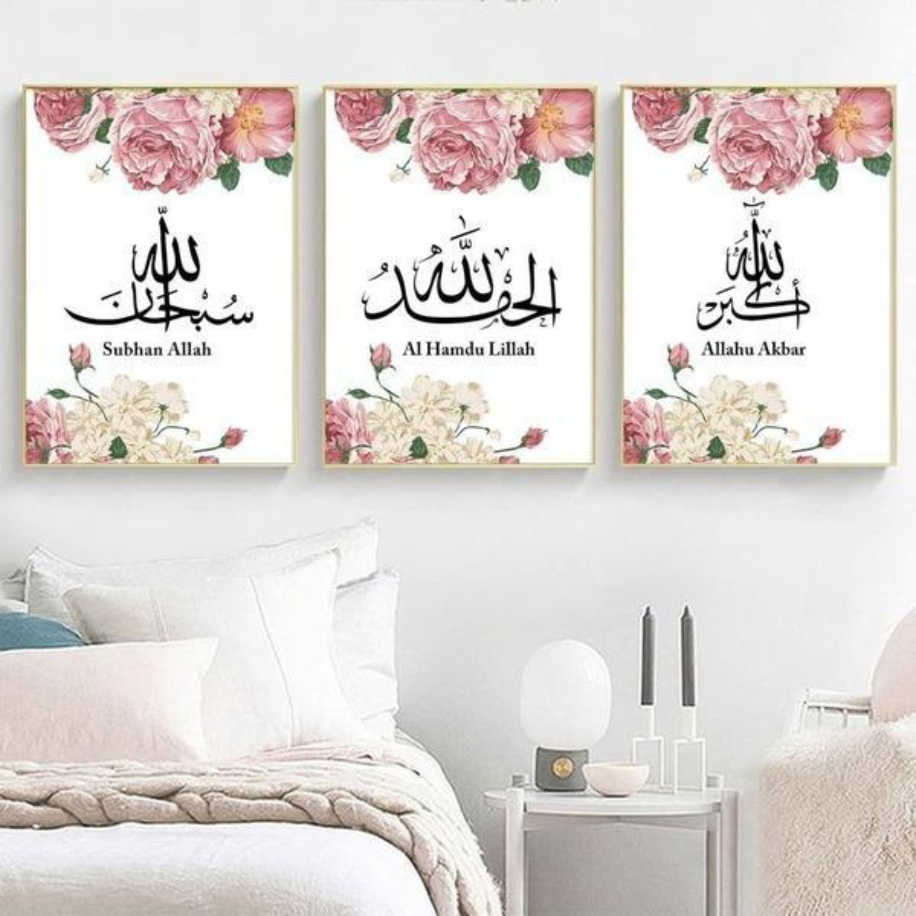 - 3-Piece Islamic Wall Art Set with Allah and Muhammad Names
